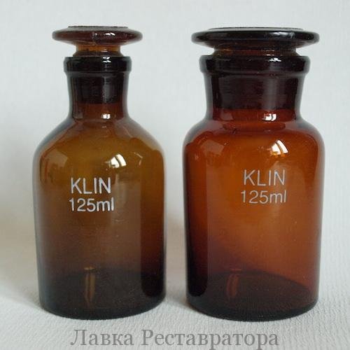 Флакон небольшого объема (125 мл) применяется в реставрационных мастерских для хранения химических реактивов. Склянка с широким горлом подойдет для хранения жидкостей, гранул или порошков. Притертая пробка предохраняет реактивы от влаги и примесей, содержащихся в воздухе.
