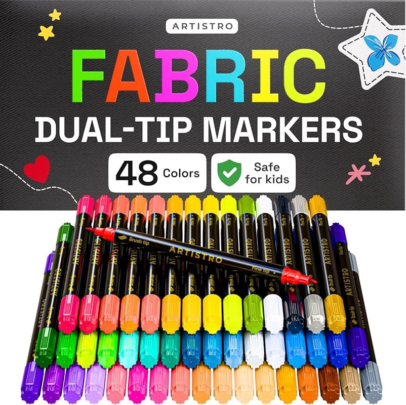 1. ARTISTRO 48 Dual-Tip Fabric Markers: Permanent Acrylic Paint Pens for Clothes, Canvas & Textiles