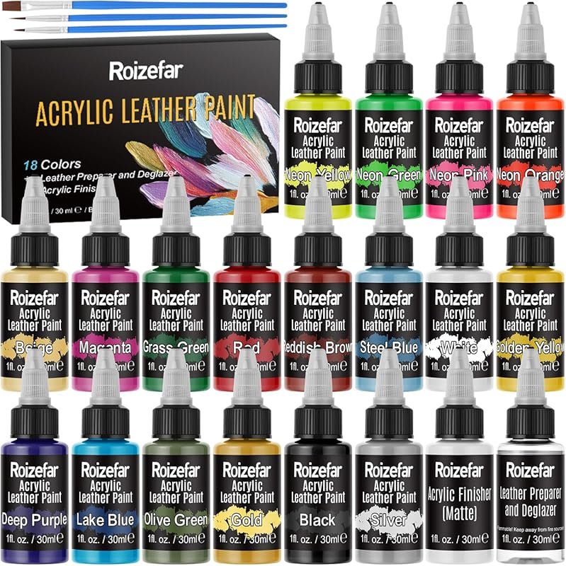 1. Roizefar 18-Color Acrylic Leather Paint Kit with Deglazer and Finisher for Shoes and Sneakers…. Roizefar 18-Color Acrylic Leather Paint Kit with Deglazer and Finisher Check Price