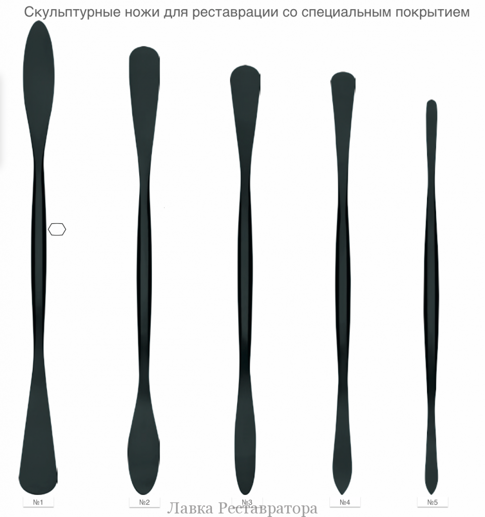 Описание: Двусторонний скульптурный нож из каленой углеродистой стали. Имеет эргономичную удлиненную рукоятку. Высокое качество инструмента достигается ручной полировкой. Рекомендуется для скульпторов, позолотчиков и реставраторов. Скульптурный нож представлен номерами от 1 до 13. Цена указана за 1 шт.