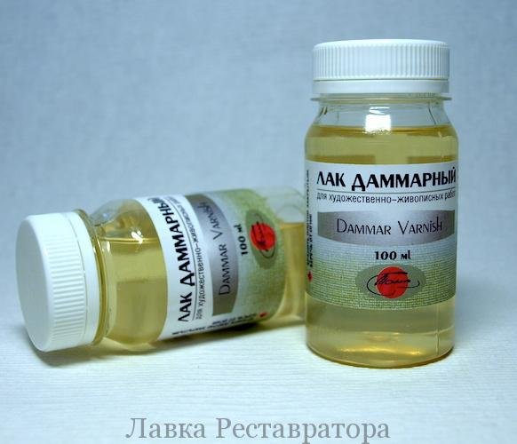 Описание: лак для живописи и реставрации. Прозрачная светло-желтая жидкость, раствор даммаровой смолы в осушенном скипидаре или пинене. Образует пленку с хорошими оптическими характеристиками. Обладает сравнительно низкой стойкостью к воздействию влаги и света. Обратимый.